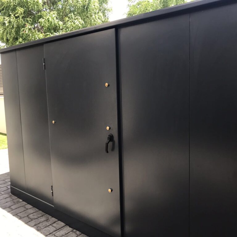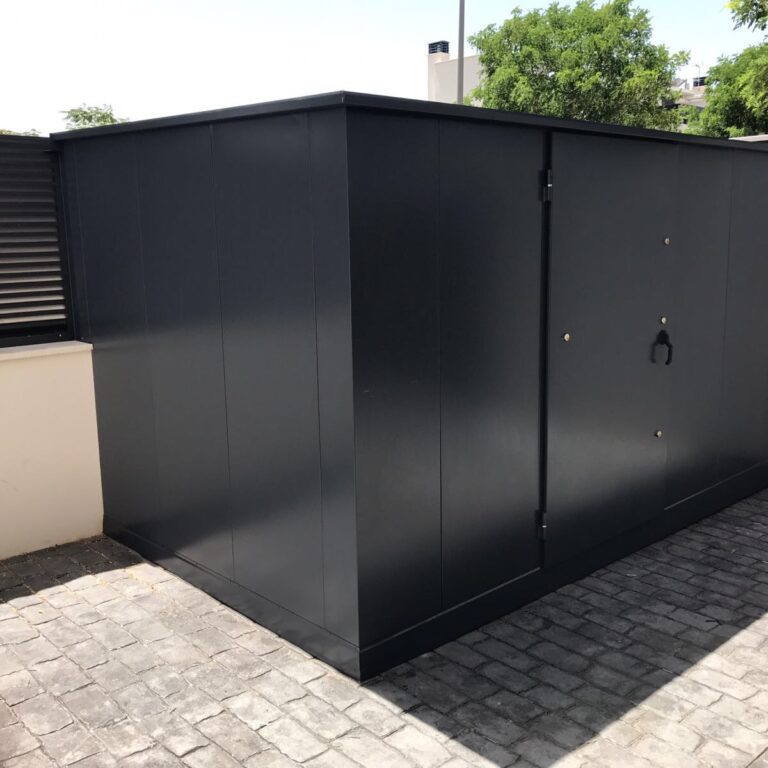 En esta ocasión vamos a presentaros una caseta de exterior diseñada a medida robusta, con puerta de seguridad para evitar (o dificultar la posibilidad de robos).