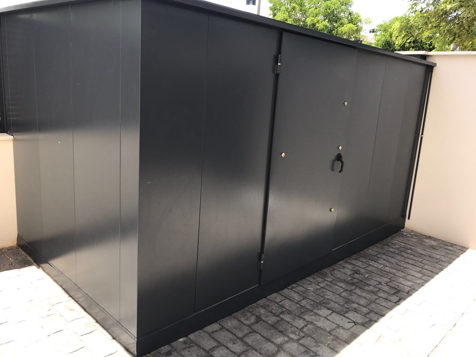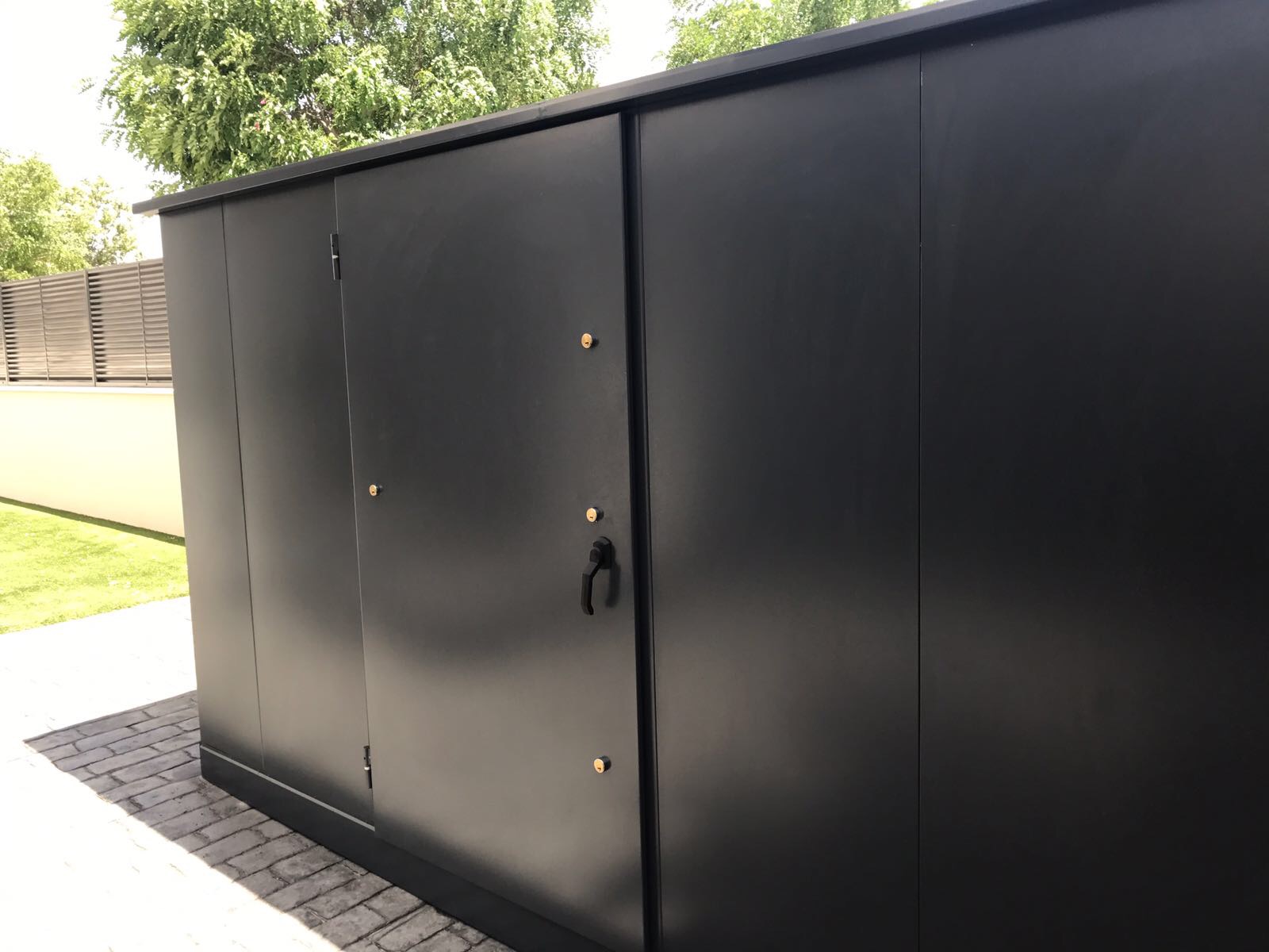 En esta ocasión vamos a presentaros una caseta de exterior diseñada a medida robusta, con puerta de seguridad para evitar (o dificultar la posibilidad de robos).